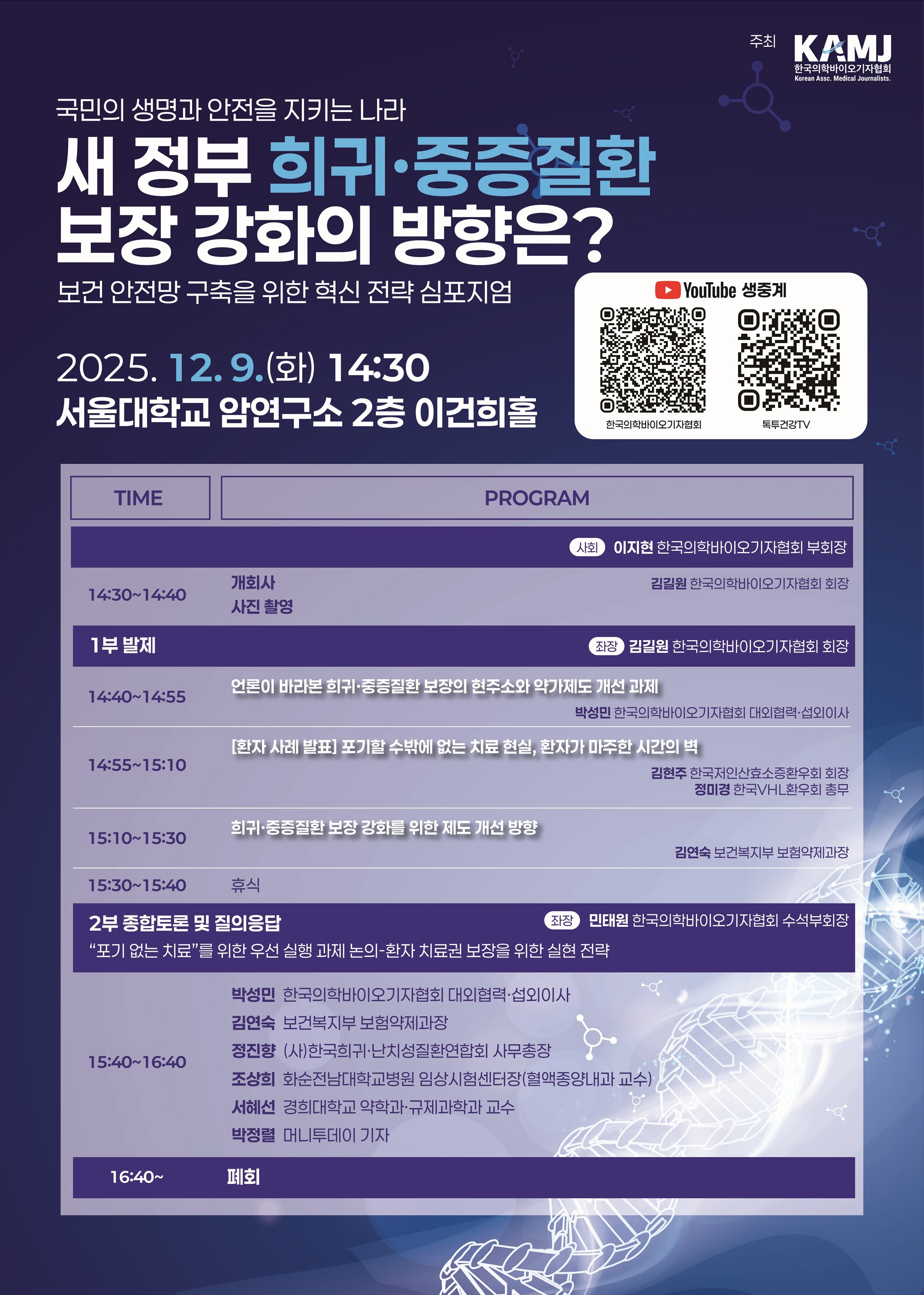 새 정부 희귀·중증질환 보장 강화의 방향은? 보건 안전망 구축을 위한 혁신 전략 심포지엄