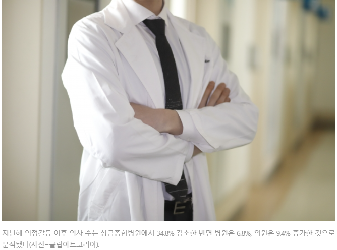 [헬스경향] 의정갈등 1년 후…상급종합병원 의사 34.8%↓ 병원 6.8%∙의원 9.4%↑
