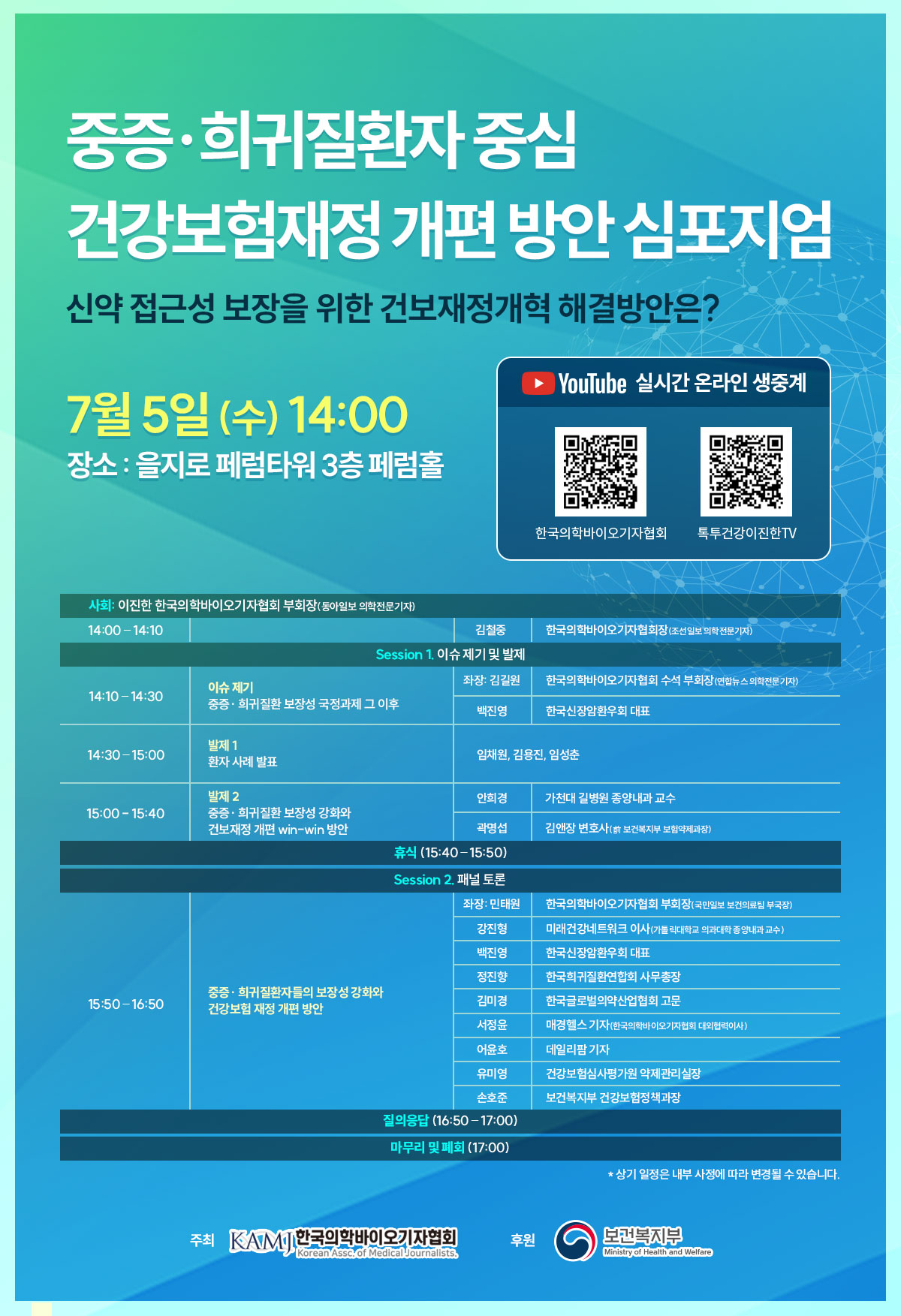 중증•희귀질환자 중심 건강보험재정 개편 방안 심포지엄