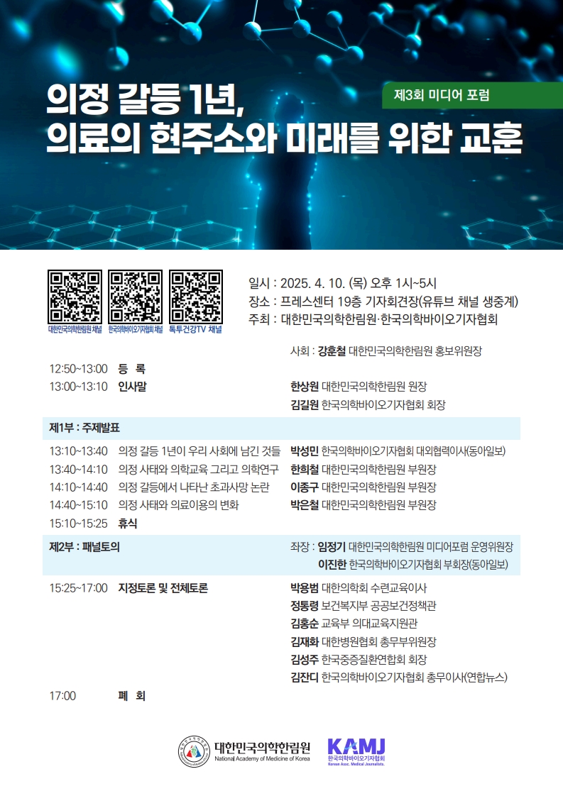 3. 주최: 대한민국의학한림원, 한국의학바이오기자협회